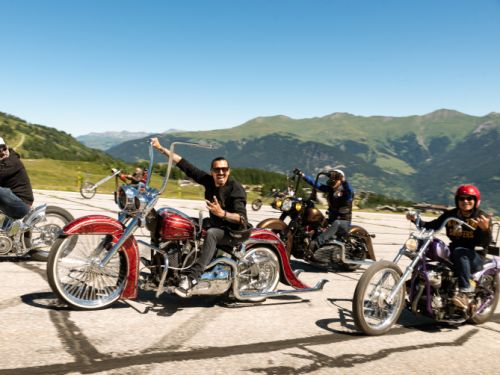 Chopper, Bobber, Clubstyle, Bagger Performance et vieilles fontes gravissent les plus belles routes d'Europe pour rejoindre le show à 1 850 mètres d'altitude et le village de Courchevel.