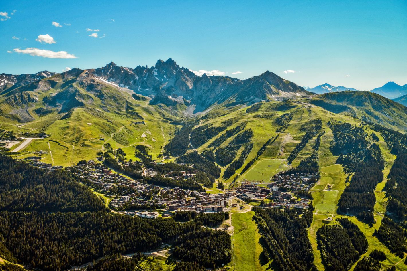 La commune dispose d'un altiport situé à Courchevel permettant d'accueillir de petits avions de tourisme et des hélicoptères. Les aéroports les plus proches sont situés à proximité des grandes villes suivantes :